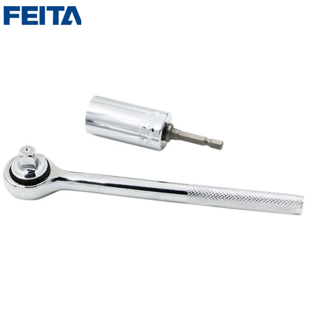 Big Discount FEITA Universal Torque Wrench Set Head Socket Sleeve 7-19mm Power Drill Ratchet Bushing Spanner Key Magic Multi Hand Tools