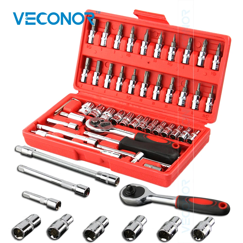 Big SALE Veconor 46pcs High Quality Socket Set Car Repair Tool Ratchet Set Torque Wrench Combination Bit a set of keys Chrome Vanadium
