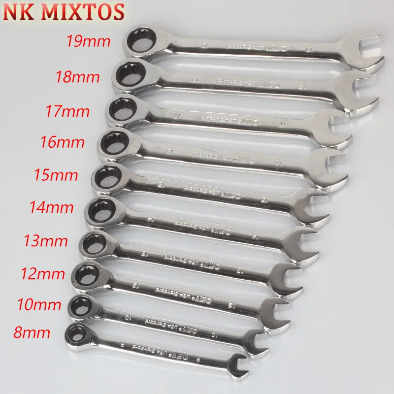 The At a minimum Expensive NK MIXTOS 8,10,12,13,14,15,17,18,19mm Ratchet Spanner Combination Wrench Keys Gear Ring Tool Handle Chrome Vanadium Tool. See our great choice and good shipping. Shop on NK MIXTOS 8,10,12,13,14,15,17,18,19mm Ratchet Spanner Combination Wrench Keys Gear Ring Tool Handle Chrome Vanadium Tool today. Best Price Promise! Now! Deal!.